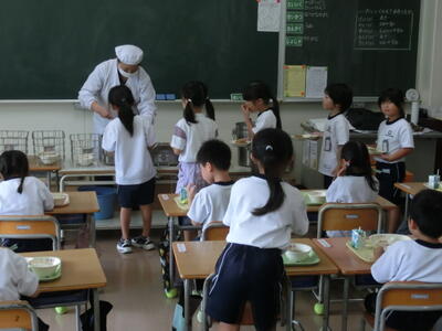 2学期の給食が本日から再開しました。久しぶりの給食を味わって美味しそうに食べている姿が印象的でした。1年生は、準備の仕方を忘れずにしっかりと覚えていました。立派な仕事ぶりでした。