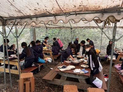 退所点検も無事クリアして、カレー作りが始まりました。慣れない手つきで野菜を恐々切っている子もいれば手際よく作業を進めている子、様々ですが確実に前には進んでいます。どんなカレーが出来るか楽しみです。