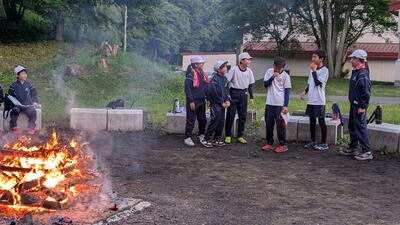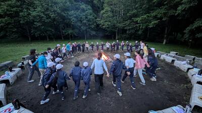 1日の最後はキャンプファイヤーです。火を囲んで歌ったり踊ったりと絆を深めました。