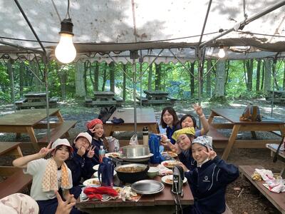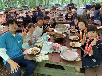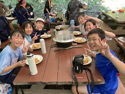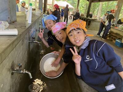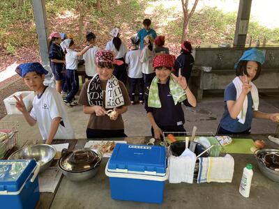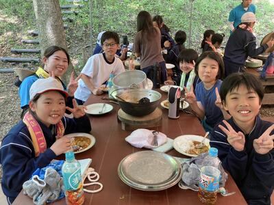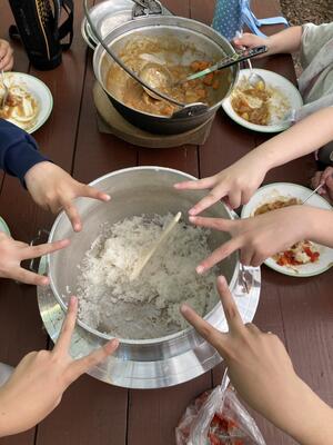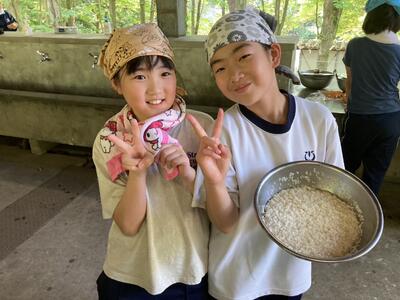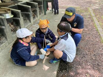 只今、昼食用のカレーライス作りをしています。材料の仕込みが終わったら自分たちで火おこし体験です。自分たちで作った火でご飯とカレーを作ることができるでしょうか?