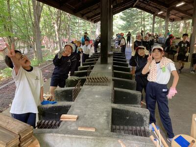 そして、なんと2つの班が火おこしに成功!自分たちで生み出した火で調理できました。美味しい顔をどうぞ。